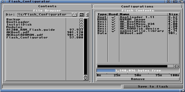Apart from additional RAM, this card has the special feature of 4MB writeable Flash memory. Software such as ROMs and modules written to this Flash memory will be retained even when the computer is powered down. Software contained inside the Flash memory will be instantly available on power on. Kickstart modules or even full Kickstart images can be written to the Flash memory area using our configuration utility.