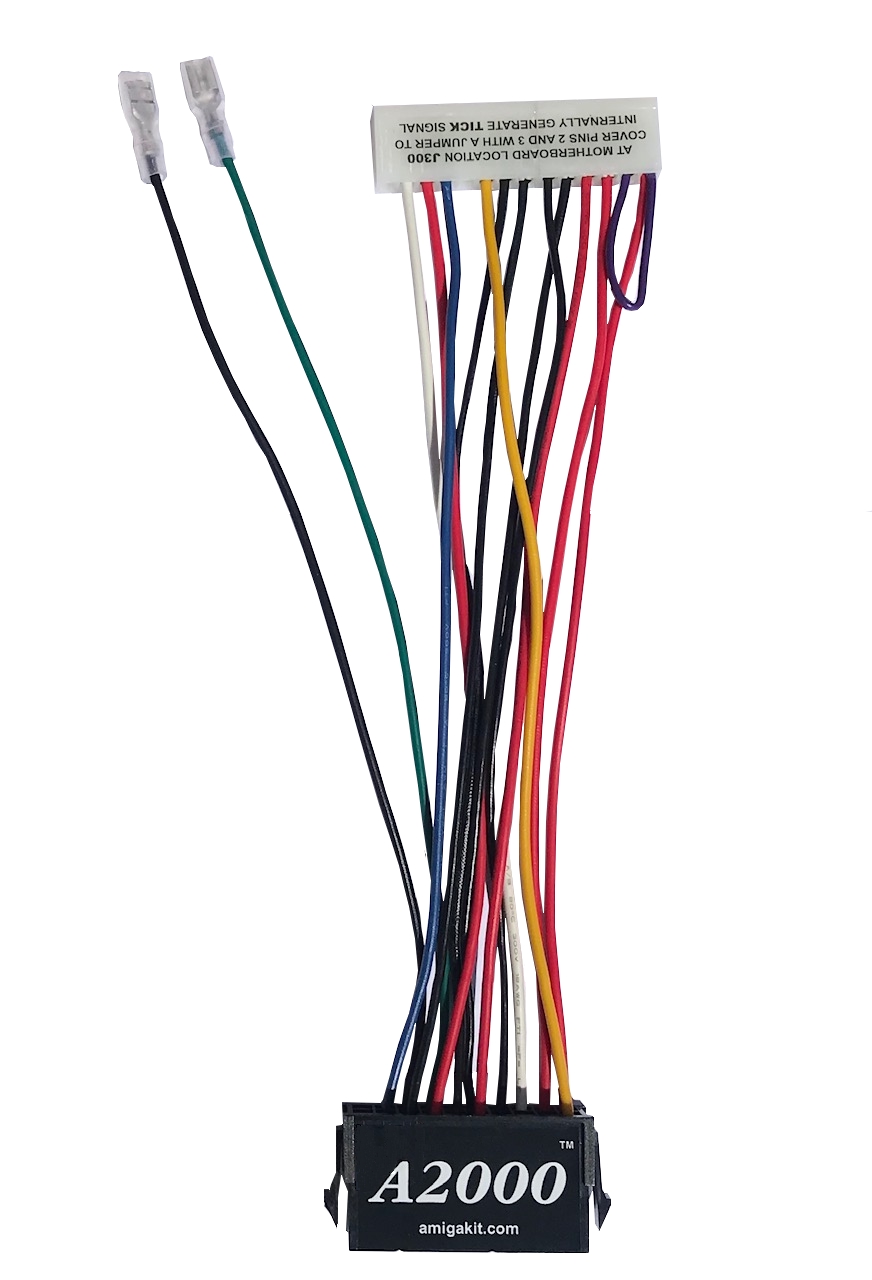 Cable wire thickness is 18 AWG. When using this cable, set J300 on A2000 motherboard to internally generate TICK signal.