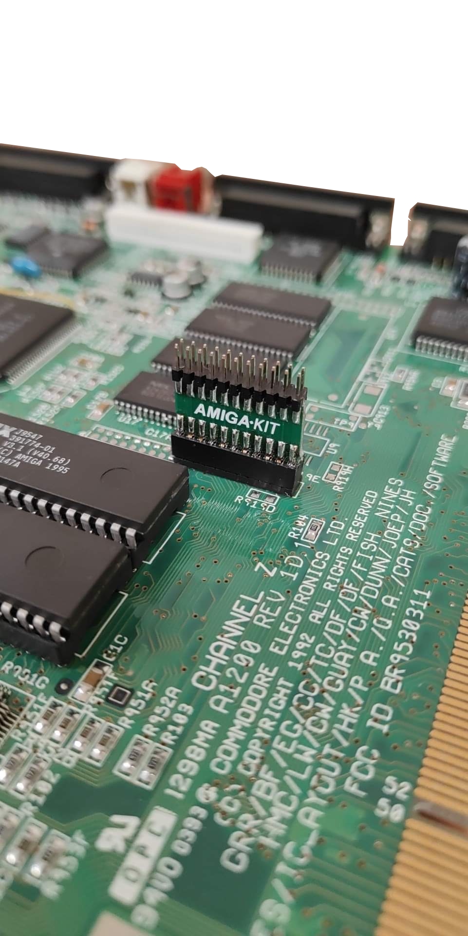 This item allows you to raise the pins of the Amiga 1200 clock port. It may be necessary if the connector of the ribbon for connecting your clock port devices is not thin enough to be installed with the