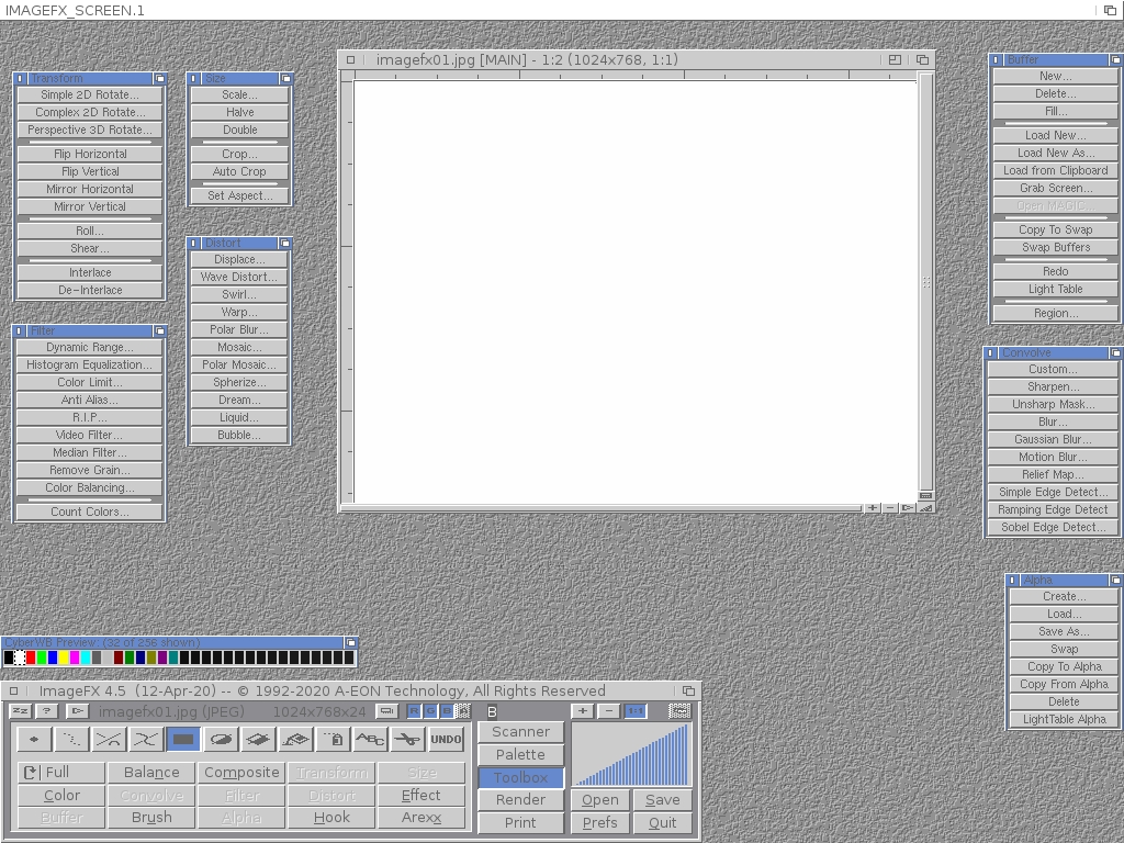 ImageFX 4.5 Studio is an all-in-one release of ImageFX 4.5, PowerStation and numerous other upgrades to make a the Amiga's most comprehensive image editing and special effects package even more complete than ever.